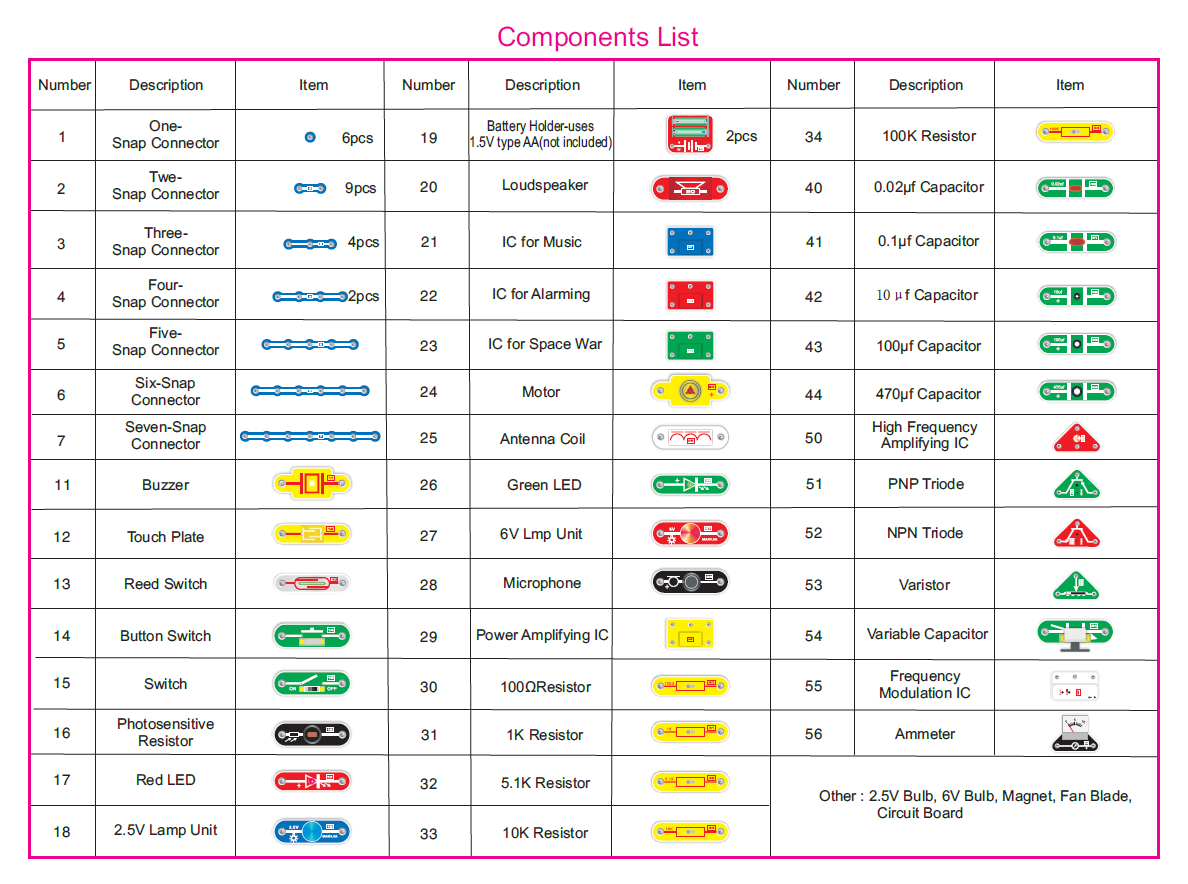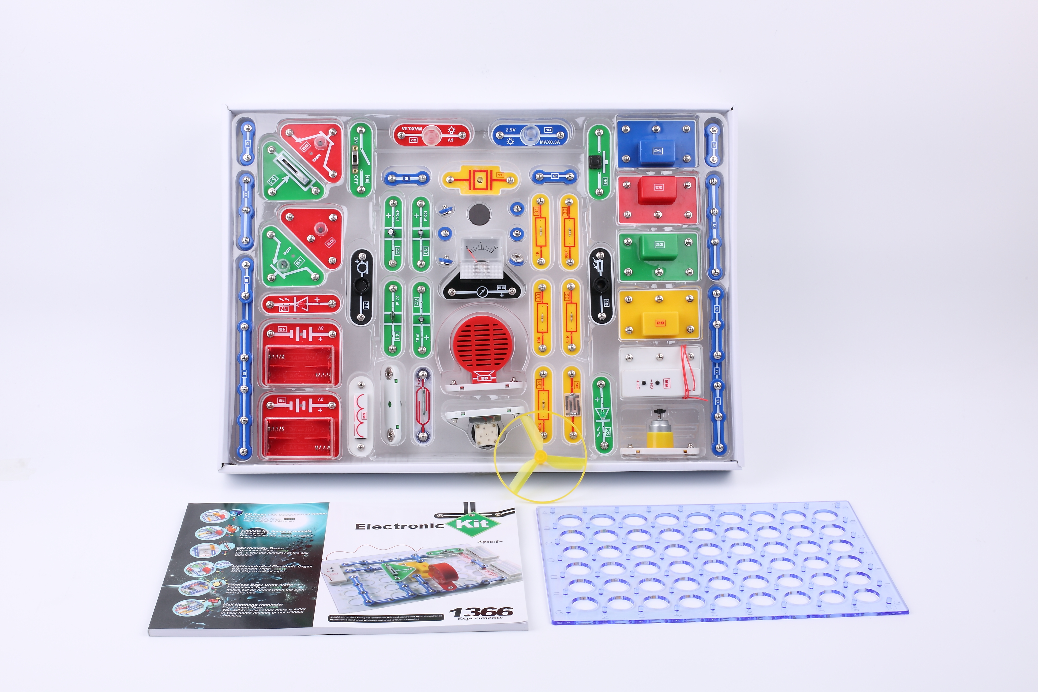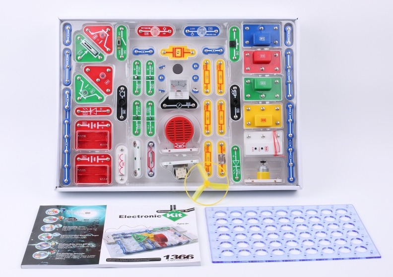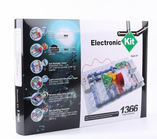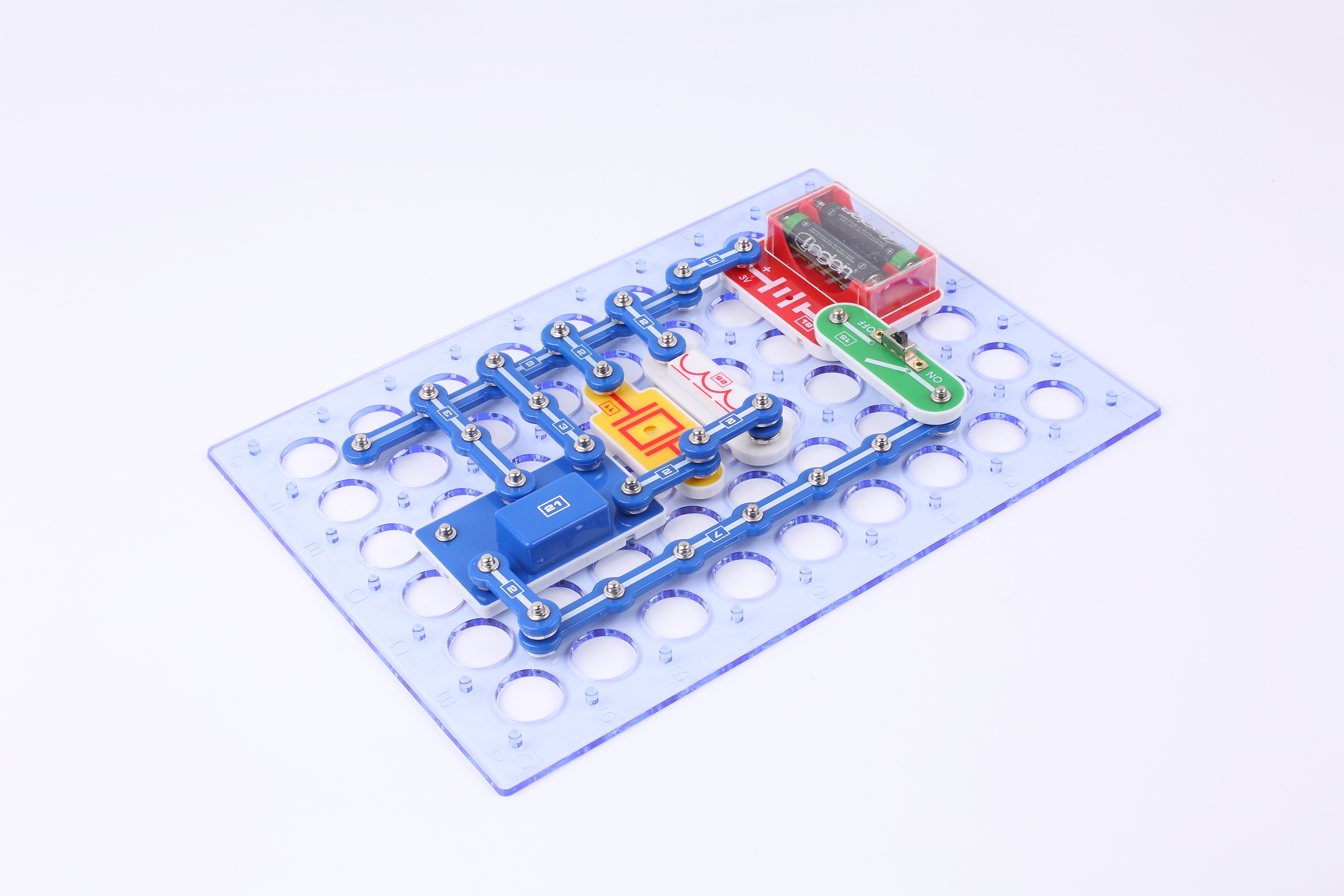 This educational kit is loaded with more than 1300 projects to build. For example, kids can learn how transistors and capacitors function, and how to make time-delay circuits. In addition, this version includes circuits showing how oscillators and photo sensors work. Projects involve an AM Radio, Burglar Alarm, Radio Announcer and more. Contains over 60 parts. Requires 4 "AA" batteries, not included.